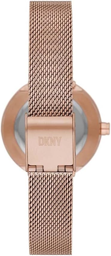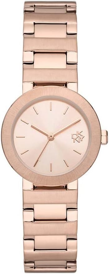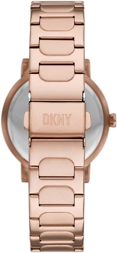 DKNY Reloj para mujer Ellington, movimiento de tres manecillas, caja de acero dorado rosa de 34 mm con correa de acero, NY2584