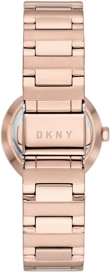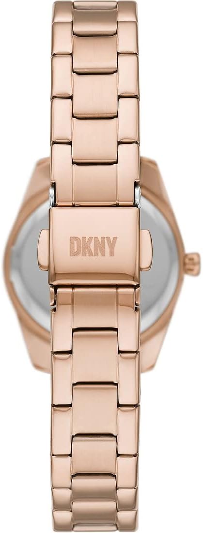 DKNY Reloj para mujer Sasha, movimiento de cuarzo de tres manecillas, caja de acero inoxidable dorado rosa de 29 mm con correa de acero, NY6654SET