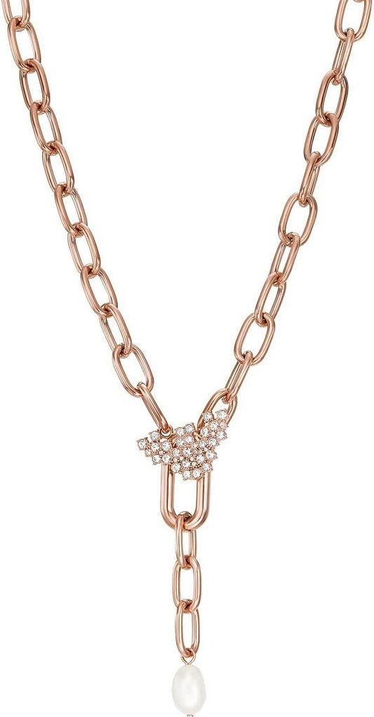 Emporio Armani Collar para mujer de plata de ley en tono oro rosa, EG3537221