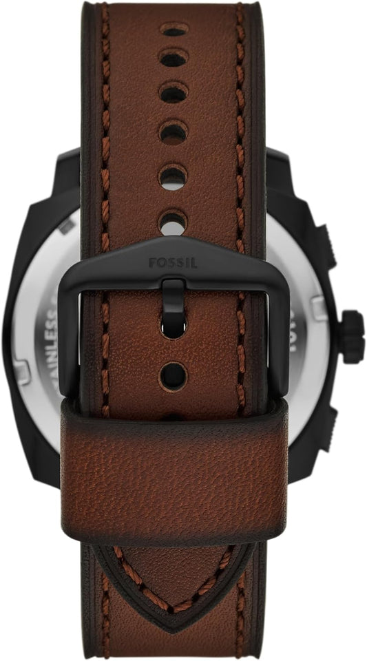 Fossil Reloj Machine para Hombre, 42mm Movimiento cronógrafo de Cuarzo con Correa de Acero o Piel