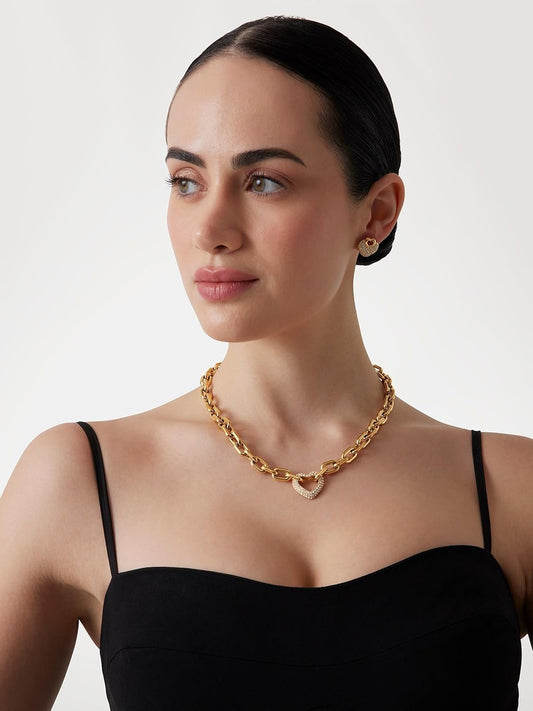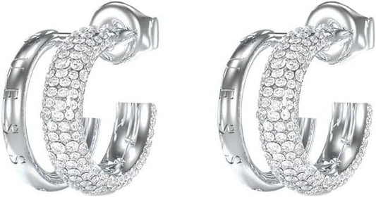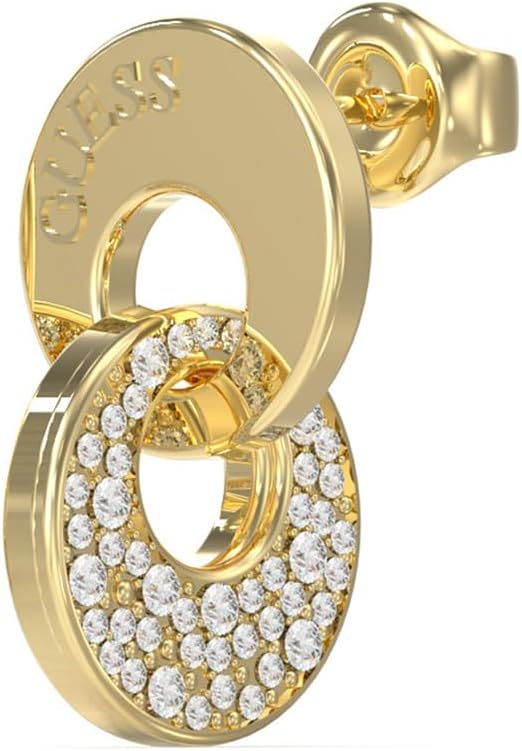 Guess Pendientes Blooming Summer Dorados – Colgantes con Doble Eslabón Circular y Cristales Pavé Blancos