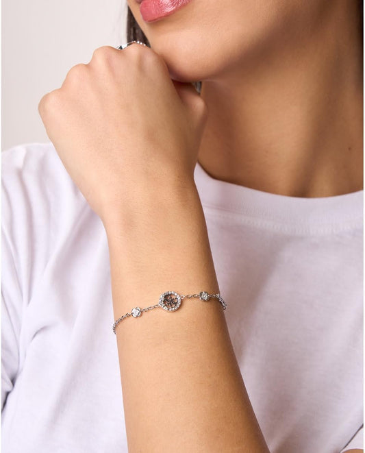 GUESS Pulsera 4 Love Plateada – Brazalete de Acero con Logo 4G, Flores y Cristales Blancos