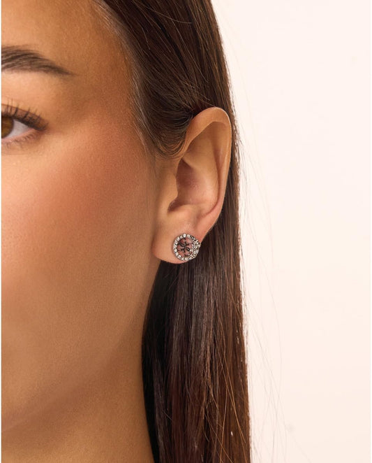 Guess Pendientes 4 Love Plateados – Botón con Logo 4G, Flores y Cristales Blancos