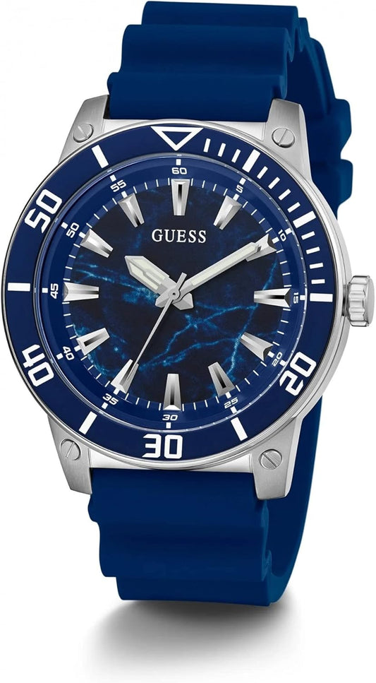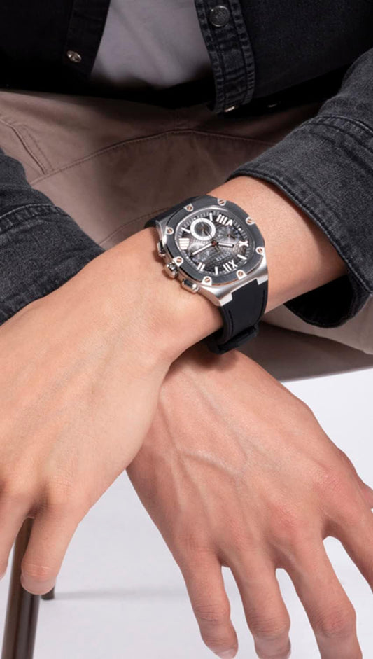 Guess Men's 42mm Watch - Black Strap Gunmetal Dial Silver Tone Case