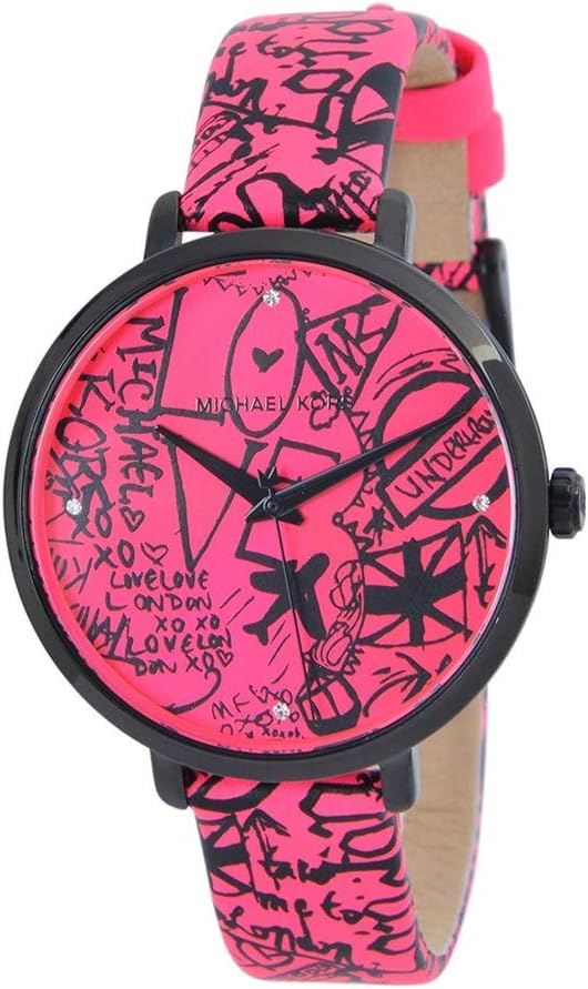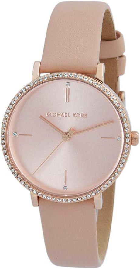 Michael Kors Reloj de Pulsera para Mujer, Caja de 32 mm de aleación en Oro Rosa, Correa de Cuero Rosa MK7113