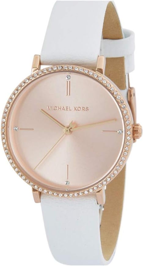 Michael Kors Reloj Mujer MK7115 con Caja en Oro Rosa y Correa de Cuero en Blanco