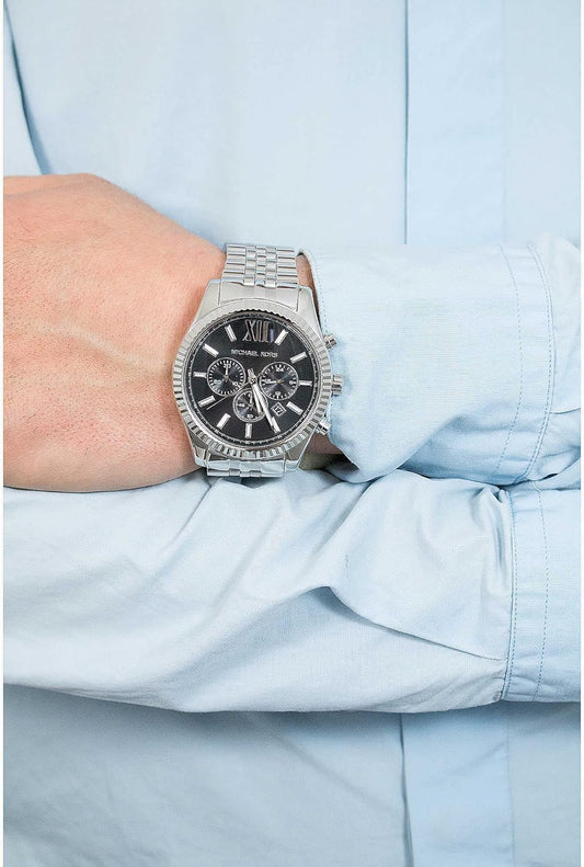 Michael Kors Reloj Lexington para Hombre, Movimiento cronógrafo de Cuarzo de 44 mm con Correa de Acero Inoxidable