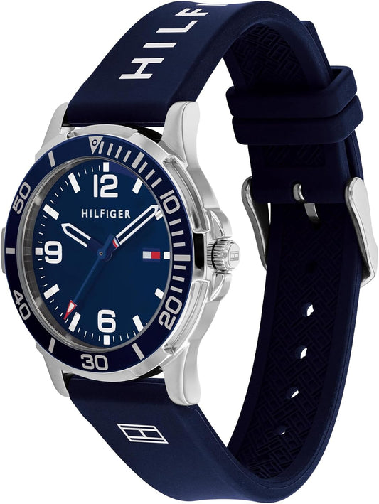 Tommy Hilfiger Reloj para Niño con Esfera Azul, Correa de Silicona Azul, Caja de Acero Inoxidable de 34mm, Bisel de Aluminio, Movimiento de Cuarzo de 3 Manecillas, Resistente al Agua 5 ATM - 1720016