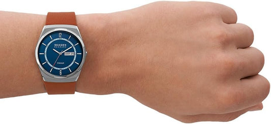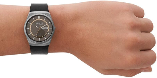 Skagen Melbye Titanium Reloj para Hombre, Movimiento de Cuarzo a Tres Agujas con Correa de Acero o Piel