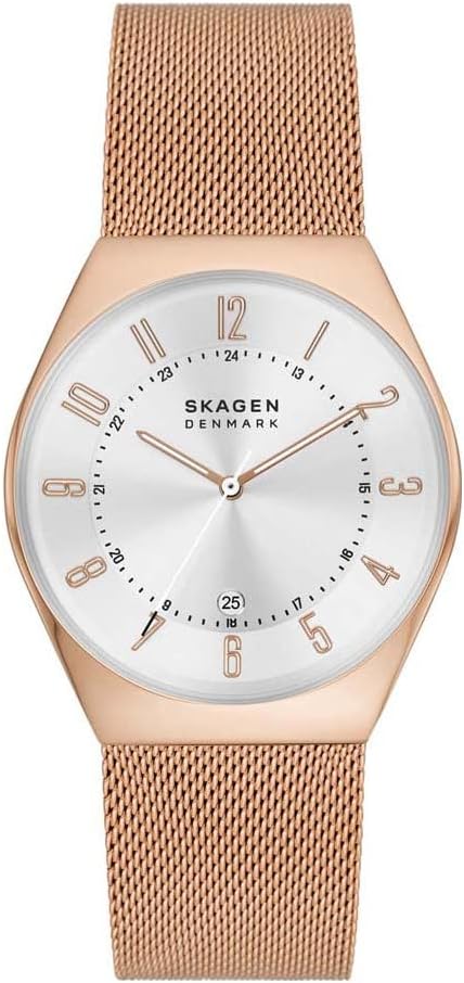 Skagen Reloj Grenen para Hombre, Movimiento de Cuarzo a Tres Agujas con Correa de Acero o Piel