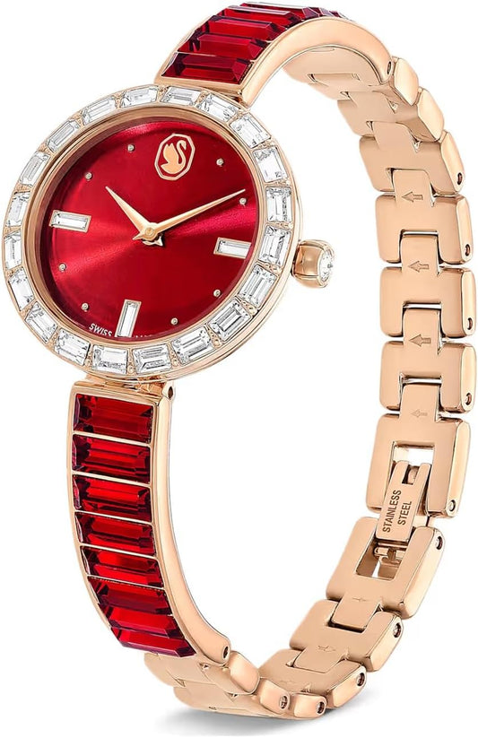 Swarovski Reloj Matrix Bangle 5690811 Fabricado en Suiza, Pulsera de Cristal, Rojo, Acabado Tono Oro Rosa