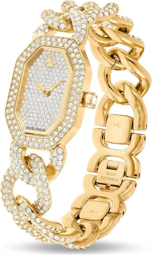 Swarovski Dextera Reloj de cadena hecho en Suiza, pulsera de cristal, tono dorado, acabado dorado 5668854, dorado, dorado, Lujoso