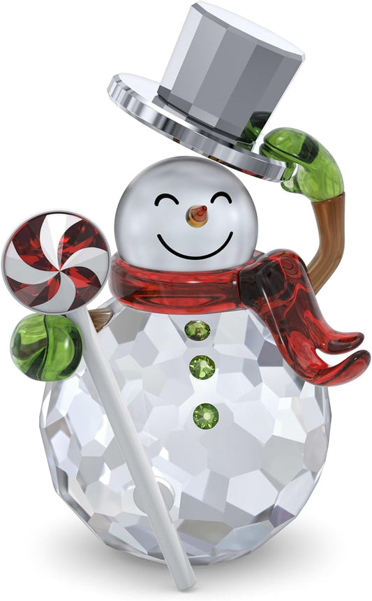 Swarovski Holiday Cheers Muñeco de Nieve Dulcis, Detalles Verdes, Rojos y Metálicos
