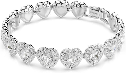 Swarovski Pulsera de tenis, cortes mixtos, corazón, blanco, acabado de rodio, M