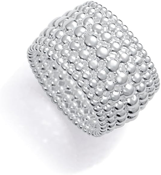 Viceroy Anillo Mujer 14319A01400 – Acero Chapado en Plata 999, Diseño de Bolas en Relieve, Talla 14, Colección Laura Escanes