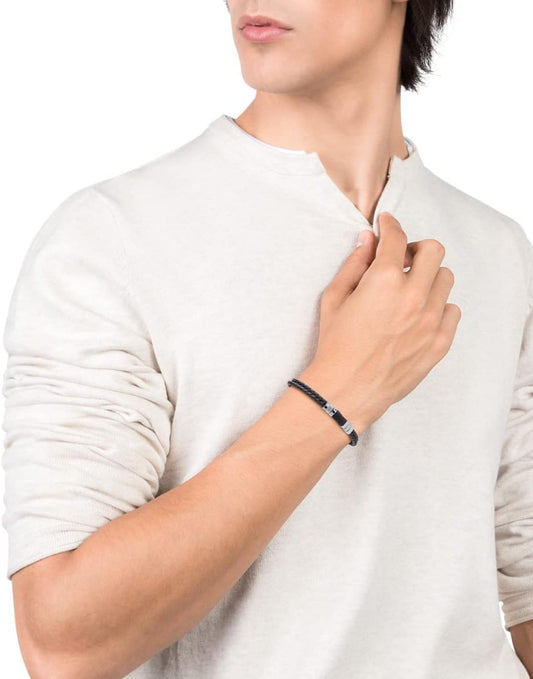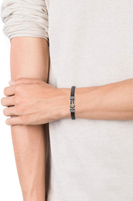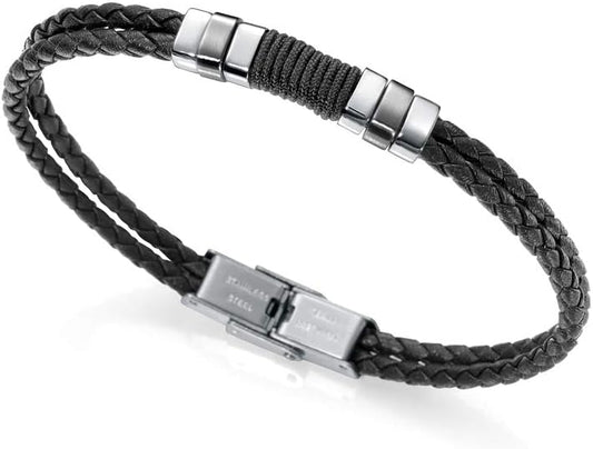 Viceroy Pulsera de Hombre Air de Piel Doble Negra Trenzada y Acero - Ref 1283536214