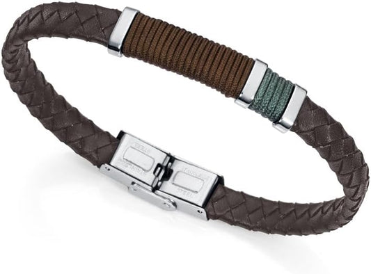 Viceroy Fashion 14330P01011 – Pulsera Hombre Piel Trenzada Marrón y Acero Inoxidable, Cierre Imantado
