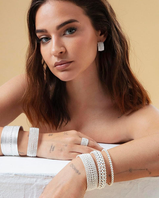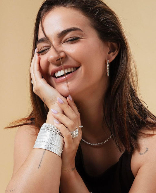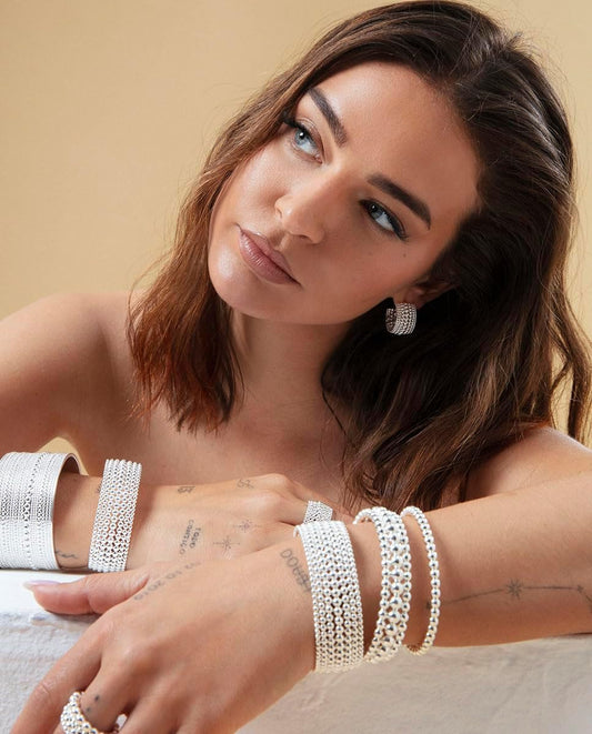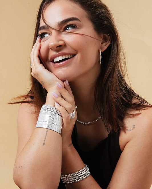Viceroy Brazalete Fashion Mujer 14316P01000 – Acero Chapado en Plata, Diseño Rígido de Bolas, Colección Laura Escanes