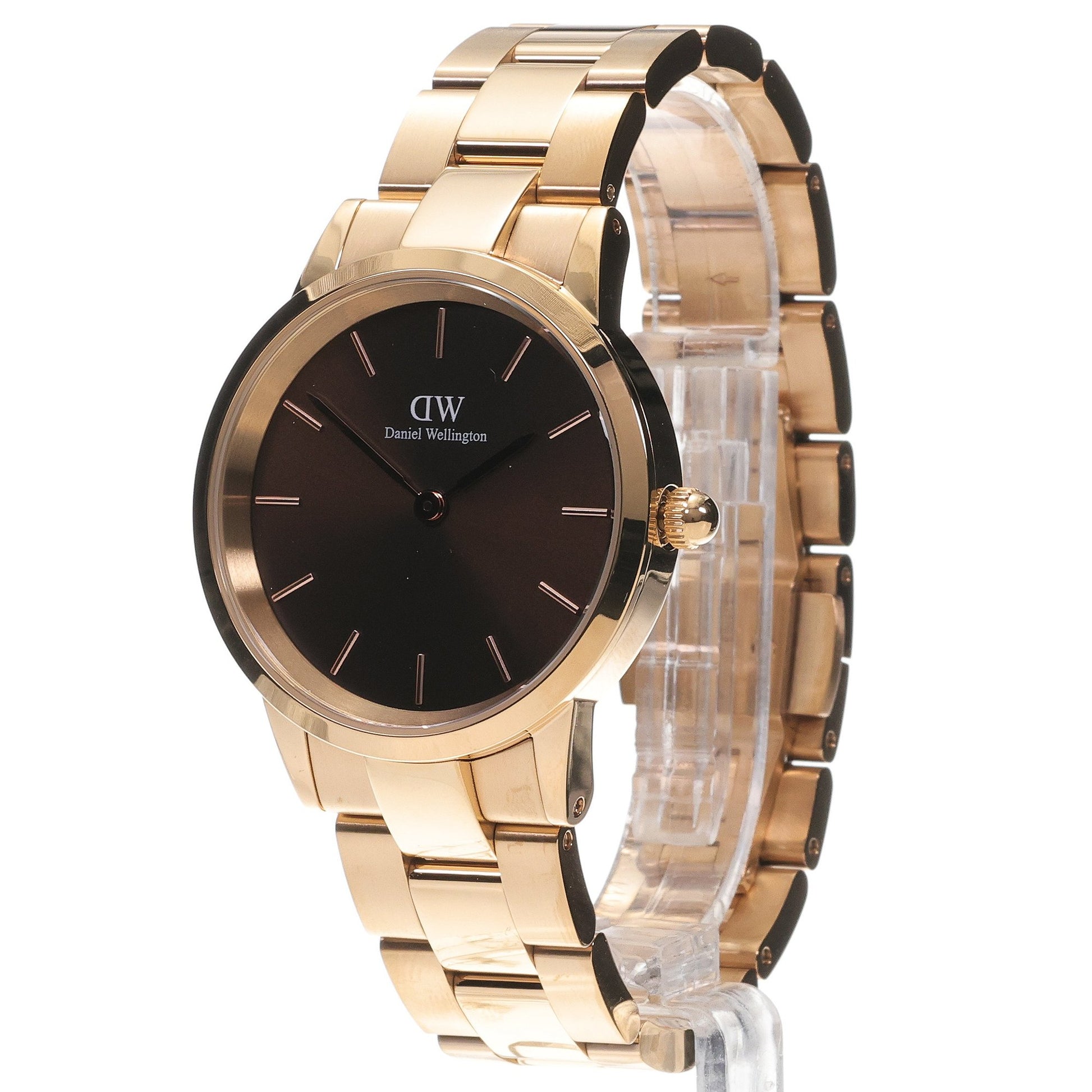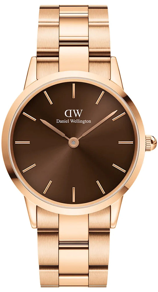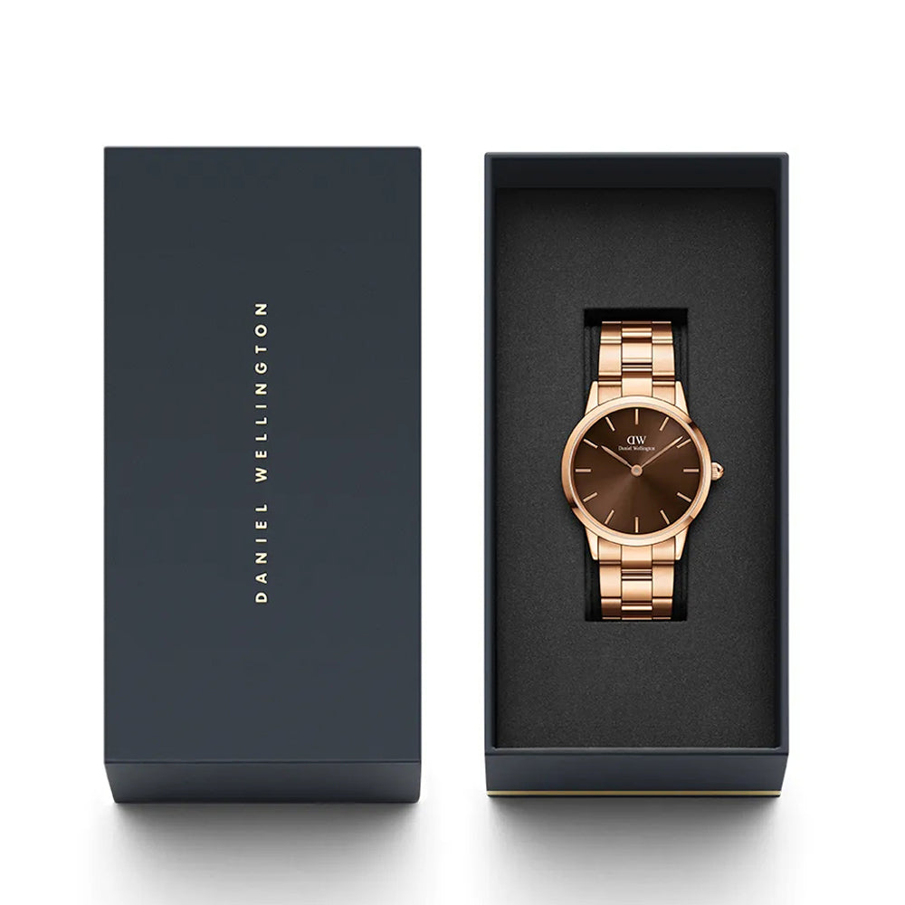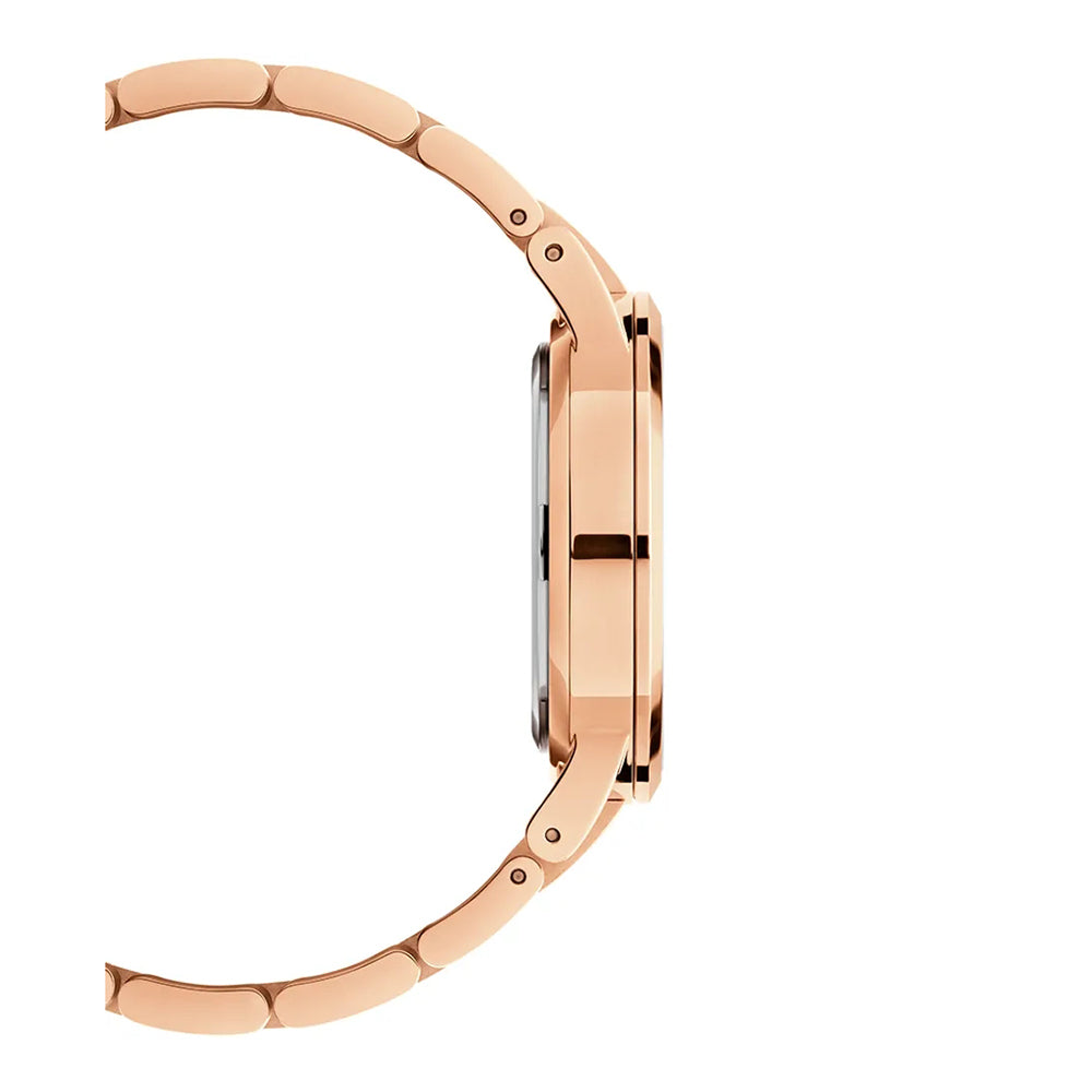 ElIconic Link Amber cuenta con una esfera de color marrón claro con un acabado sunburst. Un color vibrante asociado a la calidez, la energía y la audacia. Fabricado en acero inoxidable pulido, disponible con un refinado chapado en oro rose. Un reloj llamativo que da un toque único a su look.