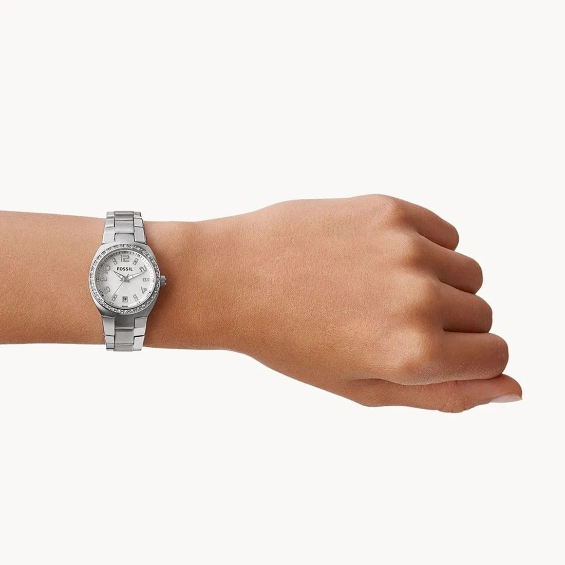 Reloj Fossil Watch Mod.lady Dress AM4141 analógico para mujer con movimiento de cuarzo, correa de acero inoxidable y resistencia al agua de 100 metros.