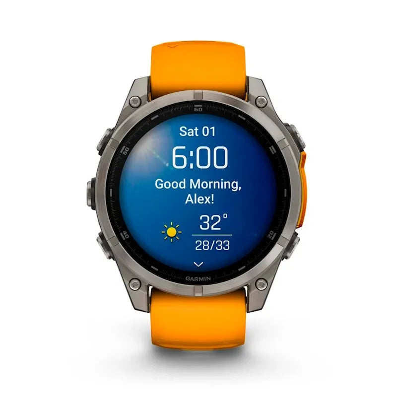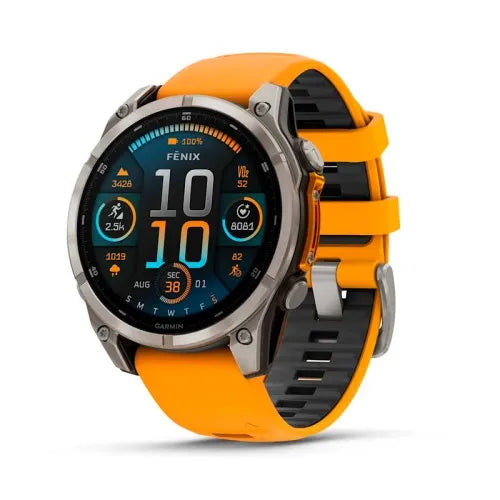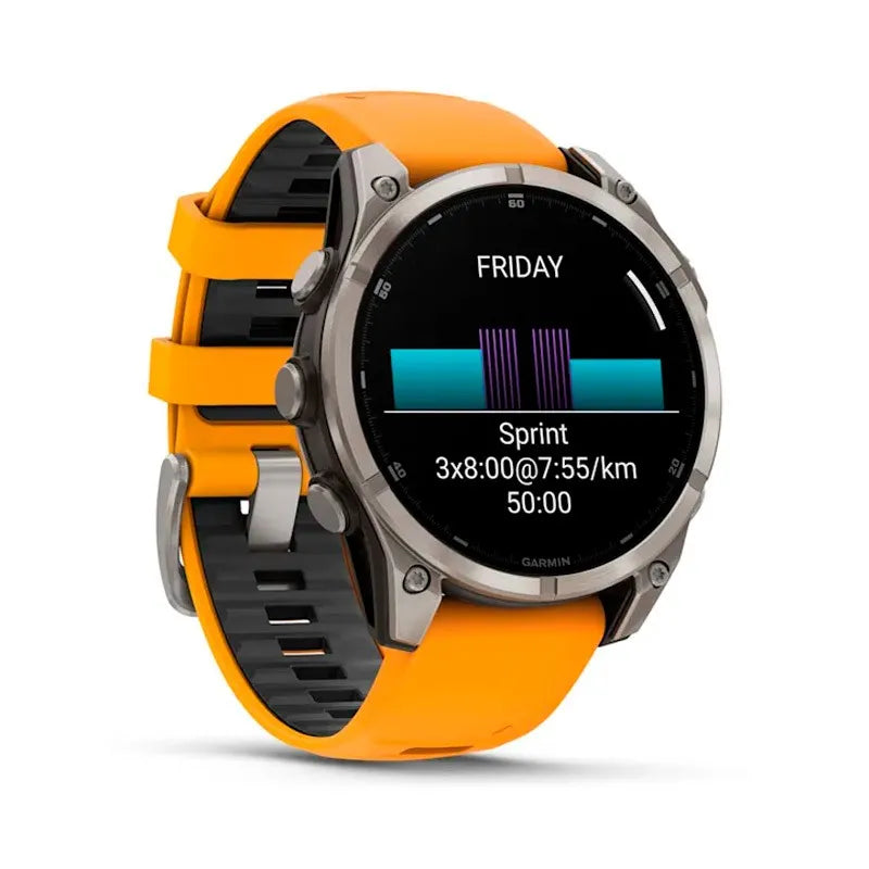 Garmin Reloj para hombre FENIX 8 47mm Zafiro Amoled Titanio con correa de silicona naranja ref: 010-02904-11