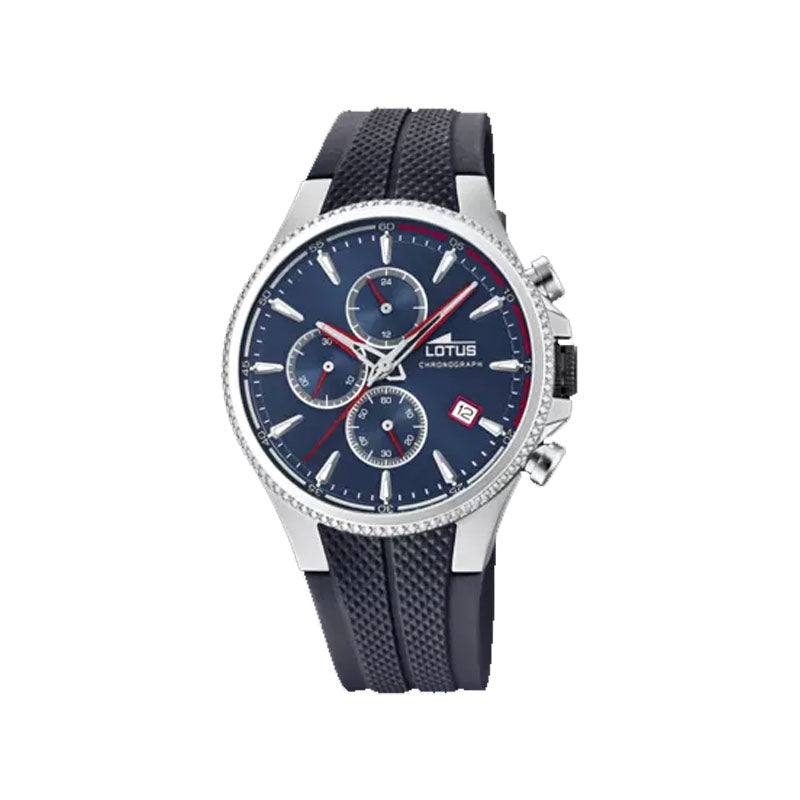 El reloj Lotus 18621/1 para hombre es una pieza impresionante con su caja de acero y cristal mineral, y una correa de caucho resistente.
