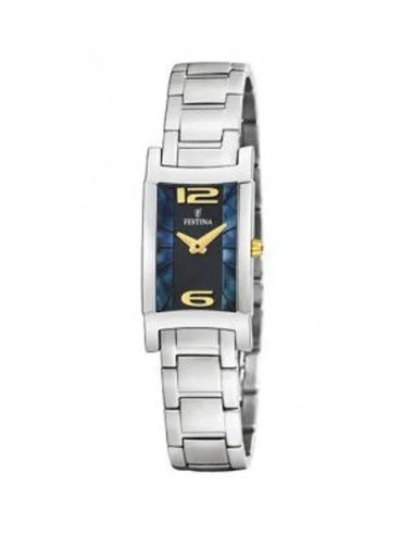 Reloj Festina para Mujer hecho en acero inoxidable . Un Reloj clásico con caja rectangular, esfera en azul y cierre de seguridad