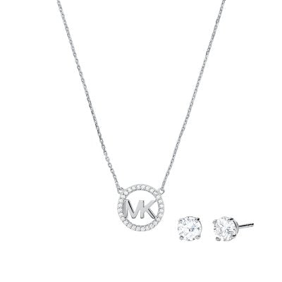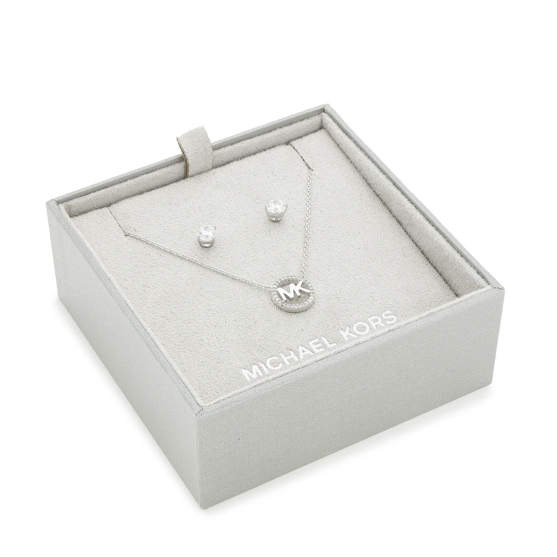 Este set de regalo Michael Kors MKC1260AN040 Premium está orientado para mujer. Colgante de plata de primera ley 925ML. Motivo con circonitas cúbicas brillantes en pavé y logo de la marca central, pendientes de botón, plata de primera ley 925ML con cristal central transforman este set de regalo en un accesorio femenino por excelencia
