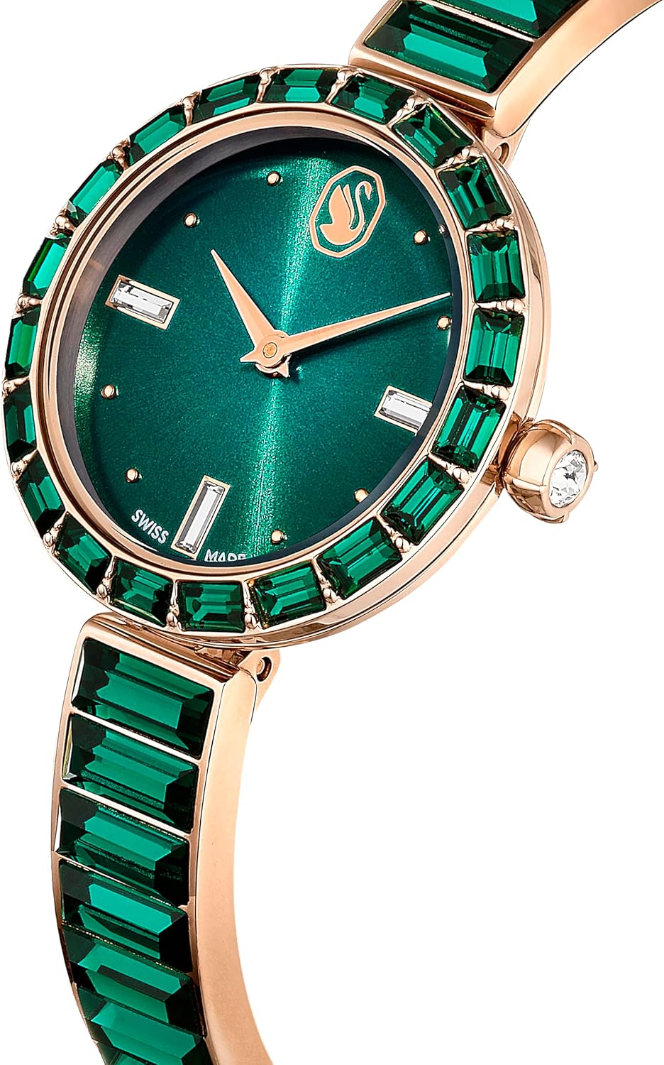 Swarovski Reloj Matrix Bangle, Fabricado en Suiza, Pulsera de Cristal, Verde, Acabado Tono Oro champán