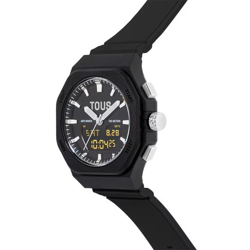 Bet es una apuesta por lo rápido que te enamorarás de este reloj. Un movimiento analógico convive con un módulo digital en una estructura robusta de Nylon endurecido y con 10 ATM. “Sporty Chic”