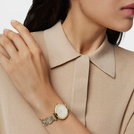 Material de la pulsera: Correa de acero inoxidable con motivos de acero IP dorado