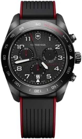 Descubre un reloj con un aspecto optimizado y una funcionalidad incondicional. El Swiss Army Chronograph Mesh se destaca en todas las capacidades: velocidad, distancia, tiempo y precisión exacta. Distinguido por su tecnicidad y resistencia, es una elección inteligente para atletas, pilotos o viajeros intrépidos del mundo. Llévalo siempre contigo y supera tus límites. Detalles del producto Reseñas y calificación Reloj con taquímetro en bisel El Swiss Army Chronograph, con su diseño excepcional, rinde en cualquier condición exigente, y fusiona resiliencia y precisión inquebrantable. Cuenta con movimiento Ronda 5030.D de fabricación suiza, además de tres subesferas para cronometraje dividido, y es un maestro de la precisión. El taquímetro integrado en el bisel de acero inoxidable pulido rastrea distancia y tiempo de forma experta. El brazalete de malla ajustable permite personalizar el tamaño. Úsalo para seguir tu progreso en circuitos de gimnasio o para registrar el kilometraje global en vuelos. Swiss Army Chronograph - 242051 Dimensiones Altura: 12 mm Peso: 114 g Distancia entre asas: 21 mm Diámetro: 42 mm Detalles N° de artículo: 242051 Pais de origen: Suiza Sellado de tapa de la caja: Tapa de caja atornillada Cronógrafo: Sí Cierre: Hebilla estándar Rotación del bisel: Bisel fijo Cuenta atrás: No Fecha: Sí Agujas luminiscentes: Sí Segundo huso horario: No Resistente al agua: 10 ATM/100 M/330 FT Materiales Material de la caja: Acero inoxidable Acabado de la caja: Cepillado Material del bisel: De acero inoxidable Acabado del bisel: Pulido Material interior del maletín: Acero inoxidable Acabado de la esfera: Mate Material del brazalete: Goma Colores Color de la caja: Negro Color del bisel: Negro Color del brazalete: Negro
